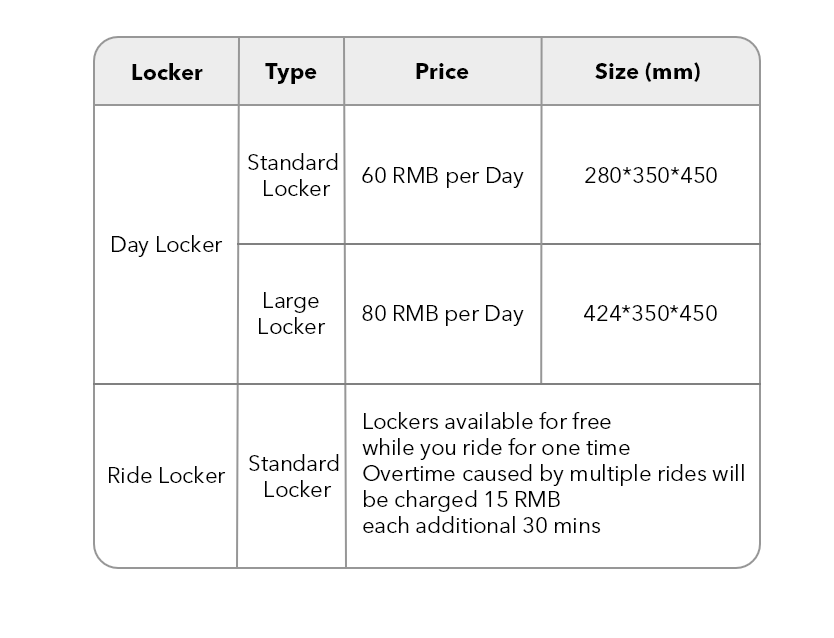 All-day Lockers in CityWalk are available for rent located at below locations: