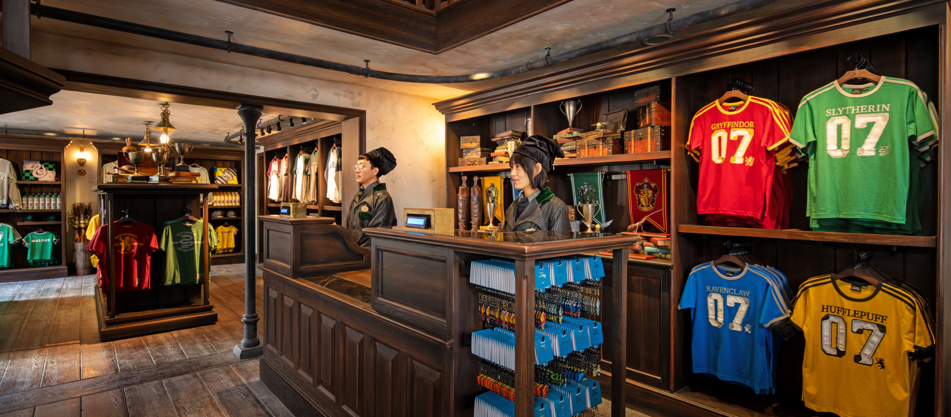 Swing by your one-stop-shop for Quidditch™ equipment, Hogwarts™ uniforms, and other merchandise.