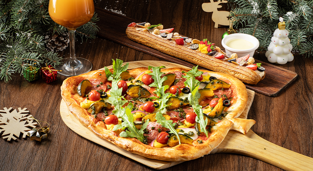 特色罗勒酱搭配满满的芝士与香肠,咸香酥脆,让你沉浸于满满的节日氛围;甜而不腻的玉桂闪电泡芙让多重滋味在唇齿间绽放,再搭配暖暖的节日热饮,将暖意无限延续。