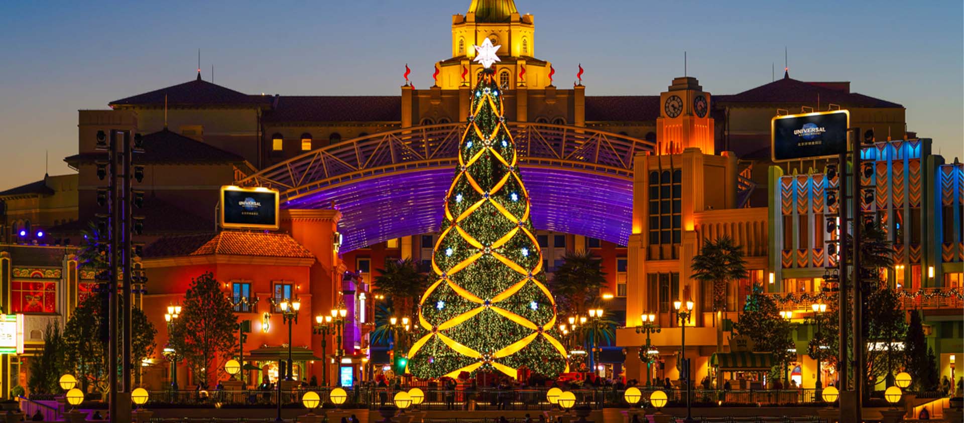 在好莱坞大道的尽头,一棵高达22米的星耀圣诞树巍然屹立,成为人群的目光焦点。金色绸缎交叉成松果的肌理形状,同时也像是礼物包装丝带,将圣诞树像一份大号礼物一样呈现在游客眼前,营造出一种既梦幻又浪漫的节日氛围。夜幕降临,星耀圣诞树华彩绽放,以一场璀璨灯光秀,伴着动人乐曲,邀观众共赴一段情感之旅,重温这份冬日里的心动。圣诞树上的灯光开始交替闪烁,变化出无数种缤纷的色彩与图案,仿佛用一场炫目的灯光秀讲述着节日的欢愉。